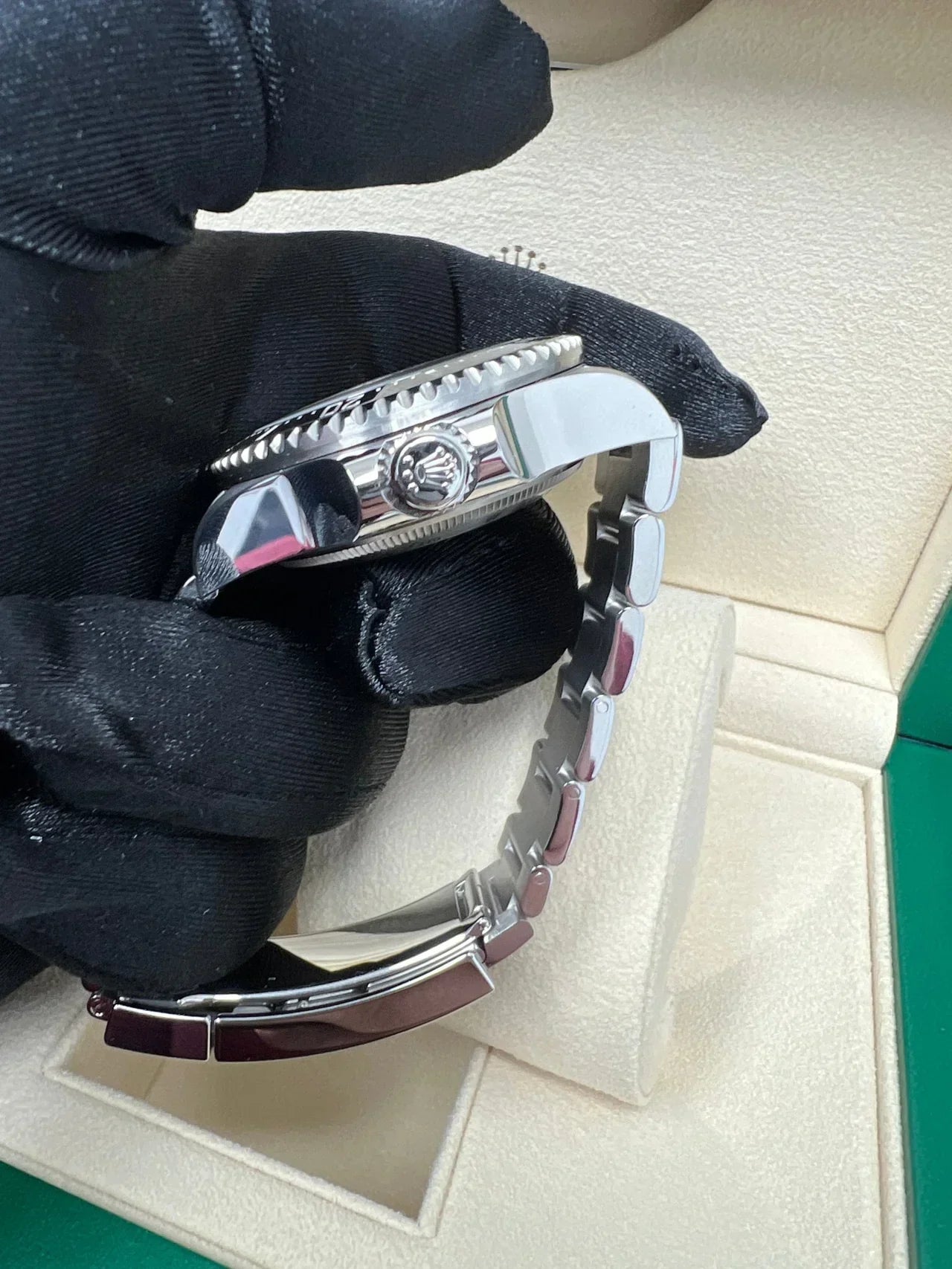 • Cassa acciaio Inox pieno 904 AISI L fresato dal pieno, realizzata su base originale con strumenti di disegno al CAD. Le casse sono tutte timbrate e serigrafie : numero di matricola da un lato tra le ansette e numero di referenza